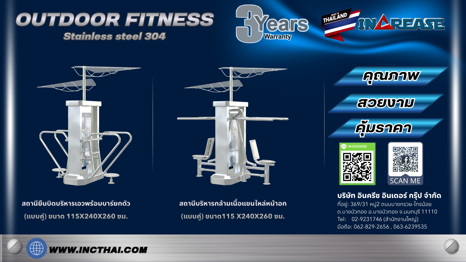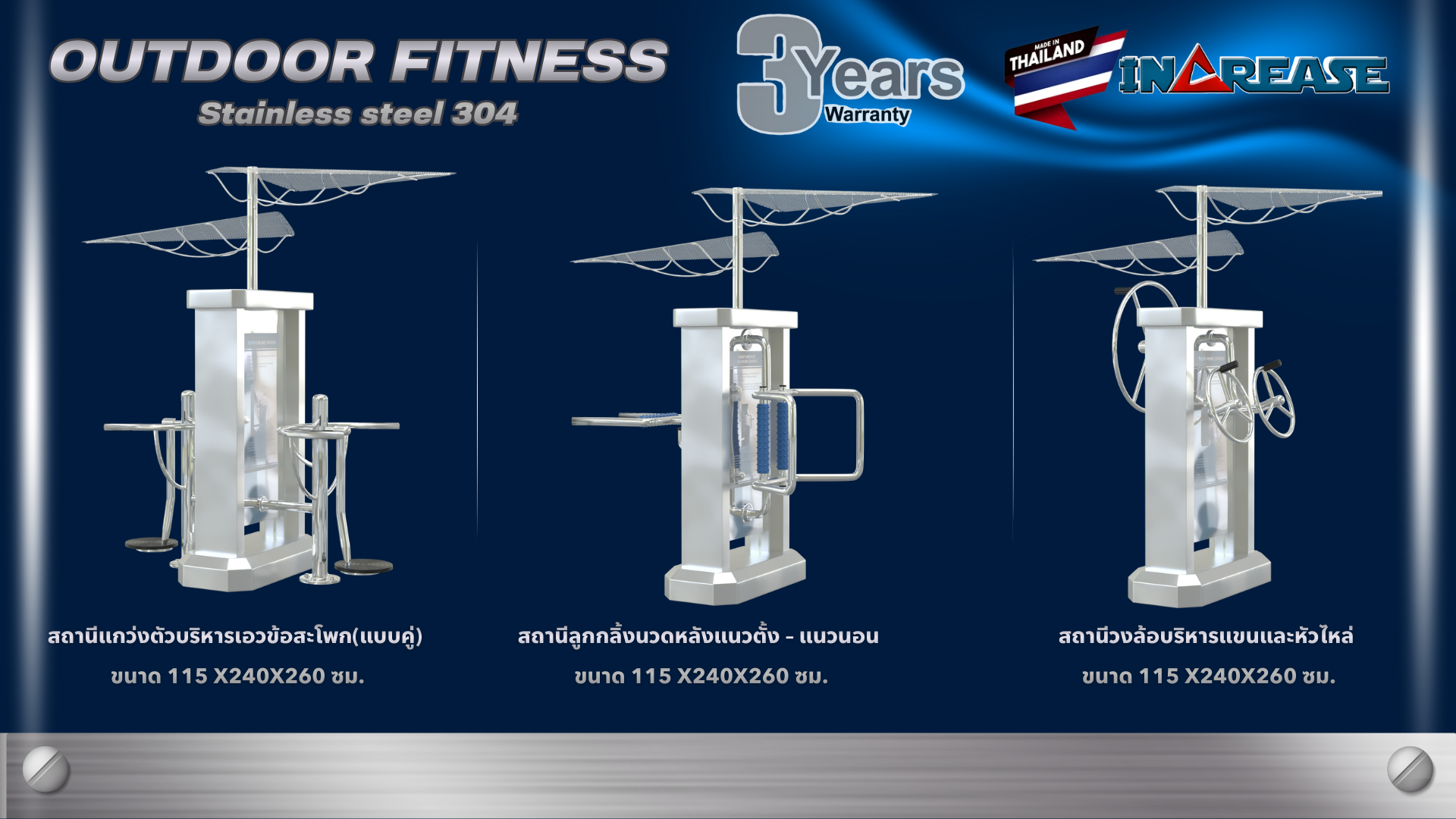 ครบครอบคลุมทุกความต้องการ ทั้งฟังก์ชั่นการใช้งานและส่งเสริมภาพลักษณ์องค์กร เครื่องออกกำลังกายสแตนเลส เครื่องออกกำลังกายเหล็กมอก. เครื่องออกกำลังกายอลูมิเนียมอัลลอยด์ เครื่องออกกำลังกายกัลวาไนซ์ เครื่องออกกำลังกายHYBRIDE เครื่องออกกำลังกายแบบสถานี พร้อมเอกสารรับรองมาตรฐานสากลและประเทศไทย