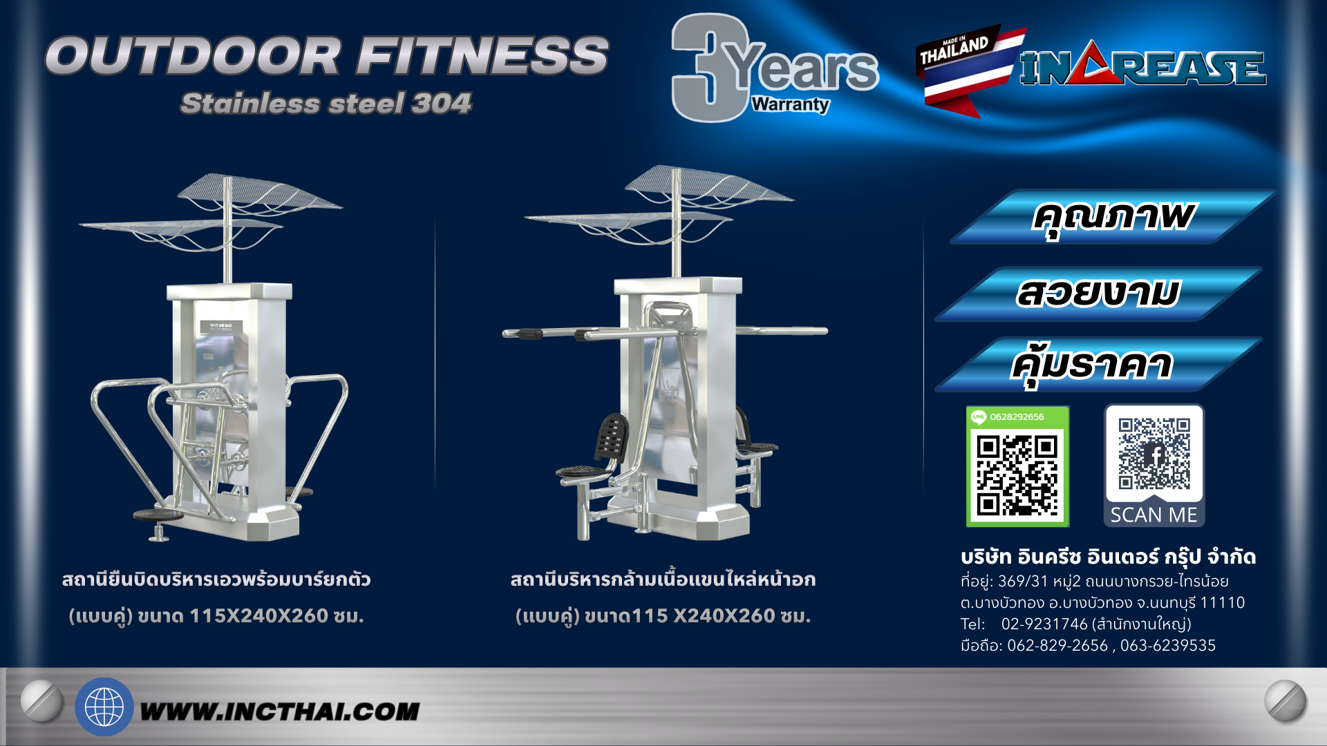 ครบครอบคลุมทุกความต้องการ ทั้งฟังก์ชั่นการใช้งานและส่งเสริมภาพลักษณ์องค์กร เครื่องออกกำลังกายสแตนเลส เครื่องออกกำลังกายเหล็กมอก. เครื่องออกกำลังกายอลูมิเนียมอัลลอยด์ เครื่องออกกำลังกายกัลวาไนซ์ เครื่องออกกำลังกายHYBRIDE เครื่องออกกำลังกายแบบสถานี พร้อมเอกสารรับรองมาตรฐานสากลและประเทศไทย