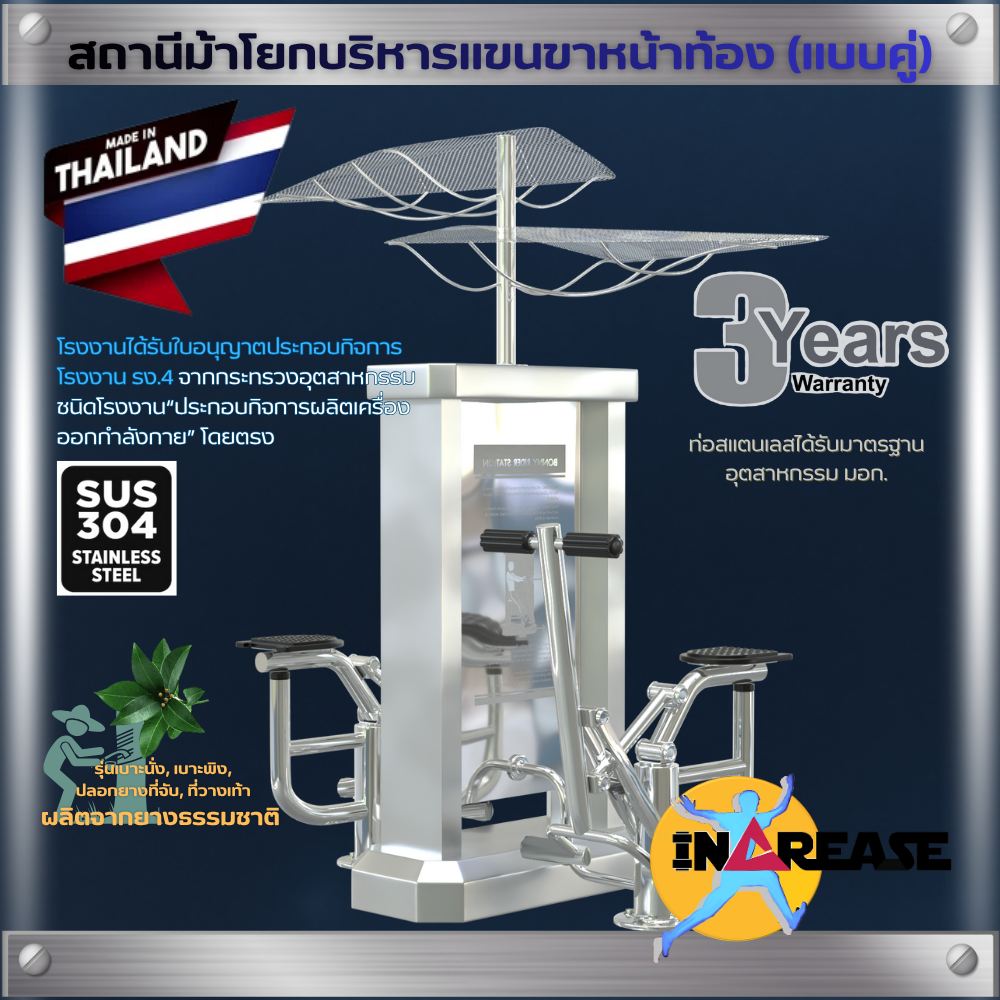 เครื่องออกกำลังกาย สถานีม้าโยกบริหารแขนขาหน้าท้อง (แบบคู่) รุ่นเบาะ/ชิ้นส่วนแบบยาง ผลิตจากยางพาราธรรมชาติ (NR)