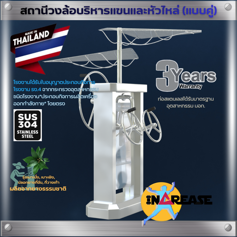 เครื่องออกกำลังกาย สถานีวงล้อบริหารแขนและหัวไหล่ รุ่นเบาะ/ชิ้นส่วนแบบยาง ผลิตจากยางพาราธรรมชาติ (NR)